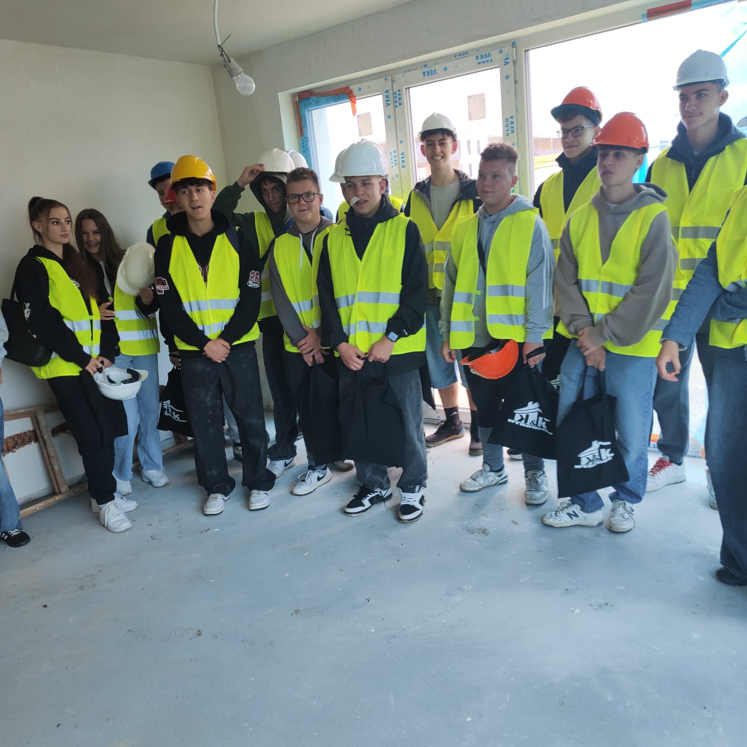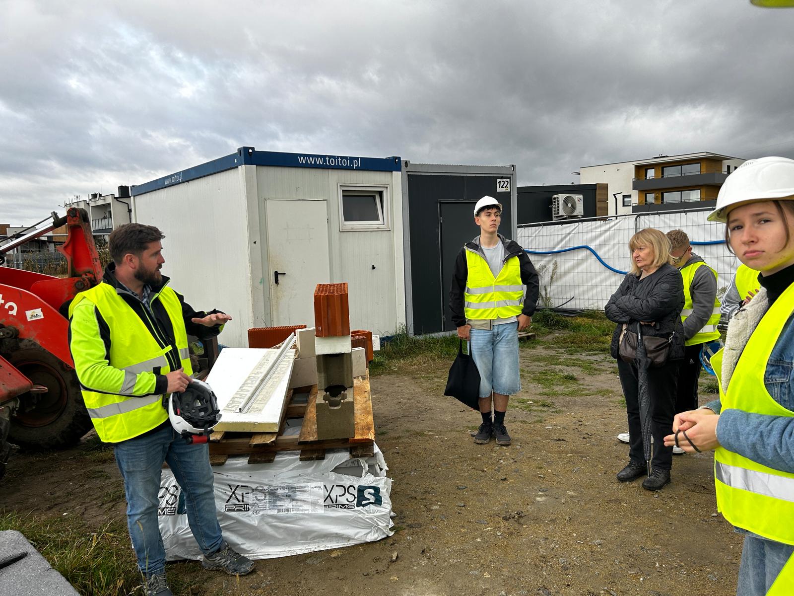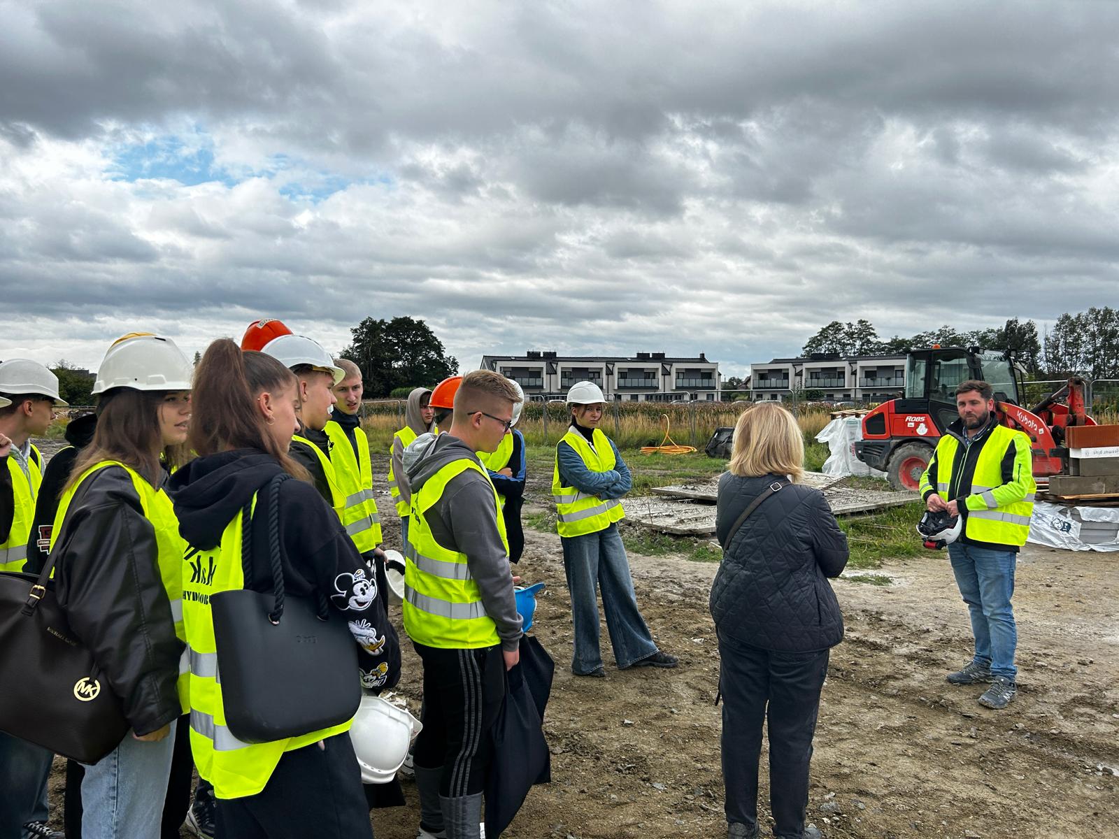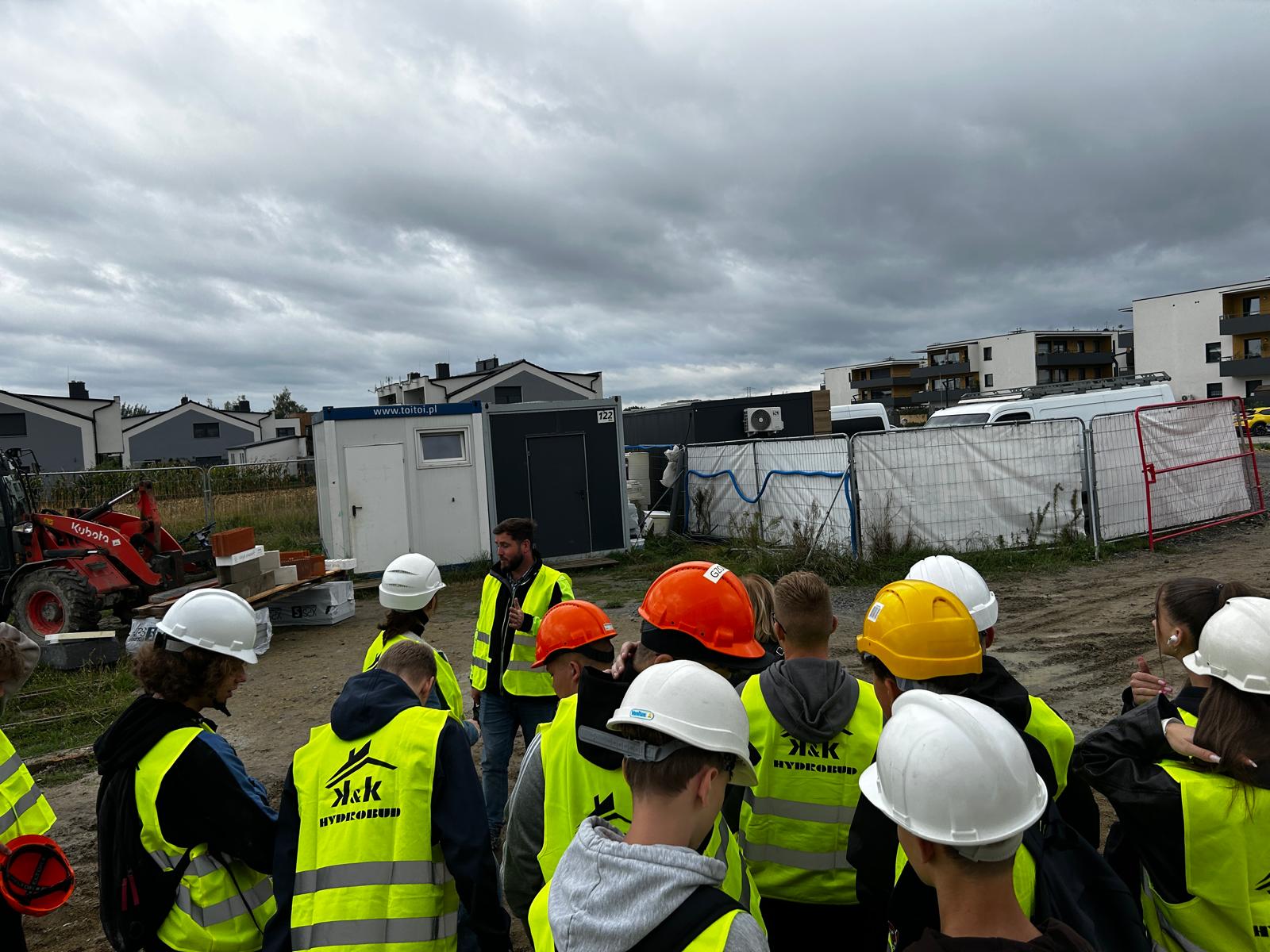W dniu 17 września 2025r uczniowie kl. 3bb, w zawodzie technik budownictwa, uczestniczyli w wycieczce zawodowej, na budowę osiedla mieszkaniowego w Opolu.  Osiedle obejmuje 17 budynków w zabudowie szeregowej, generalnym wykonawcą inwestycji jest firma K&K Hydrobud.
