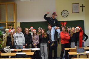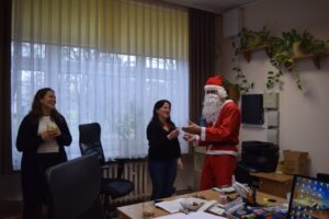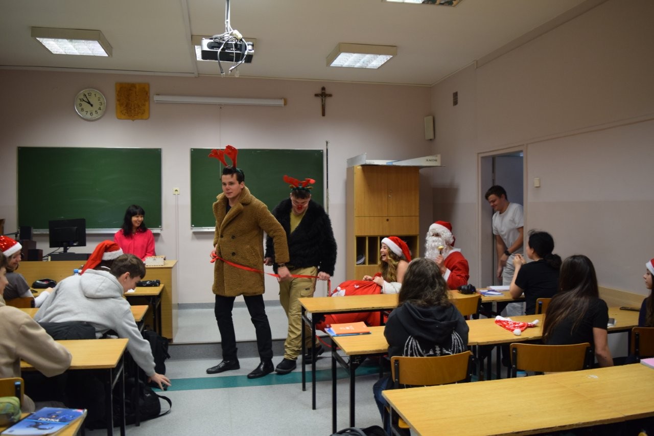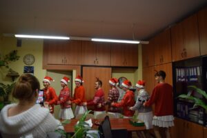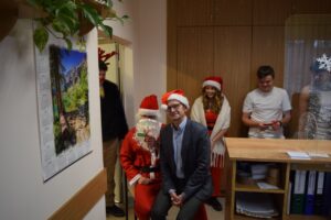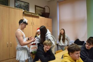 W piątek 5.12 naszą szkołę odwiedził święty mikołaj z reniferami panią mikołajkową oraz śnieżynkami