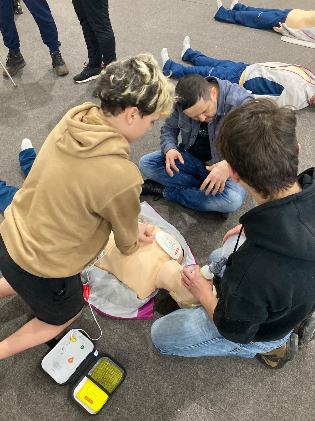 • używanie defibrylatora AED. Uczniowie Gzowskiego mogli również poznać sprzęt stosowany w ratownictwie medycznym oraz doświadczyć, jak wygląda zachowanie osoby nietrzeźwej. Nie zabrakło też rywalizacji między zespołami kiedy nasza młodzież wzięła udział w zawodach „Wyścig Karetek”.