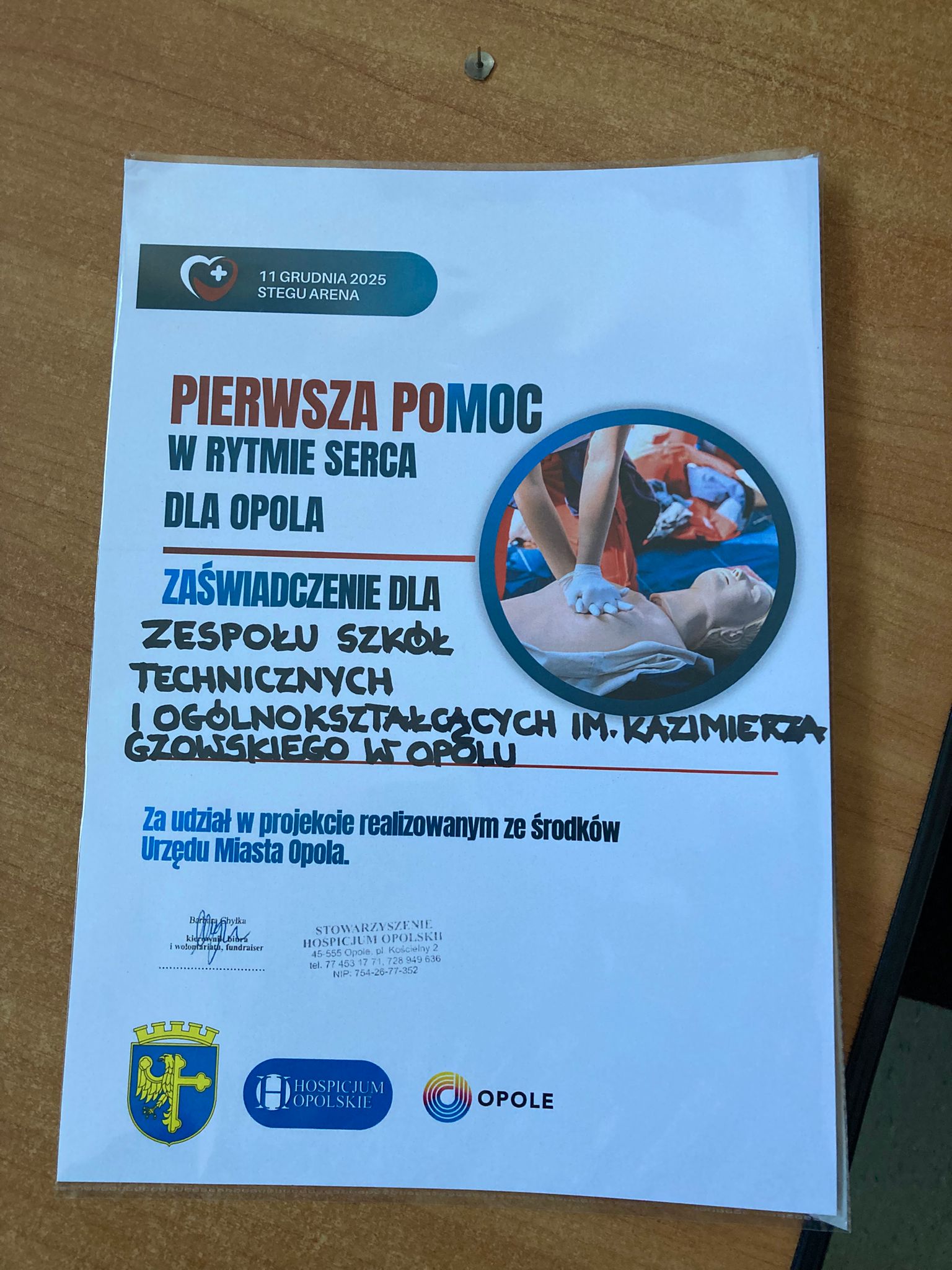 Młodzież z Gzowskiego uczestniczyła w zorganizowanym przez Urząd Miasta Opola wydarzeniu ph.: „Pierwsza Pomoc w rytmie serca dla Opola”. Grupa wolontariuszy PCK z naszej szkoły miała m.in. okazję przećwiczyć: